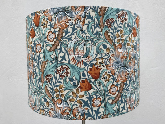 William Morris Golden Lily Teal and Orange Fabric Lampshade for Ceiling or Table Lamps