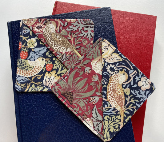 William Morris Bookmark, Strawberry Thief Cotton Fabric Corner Bookmark, Page Marker, Pack of 2