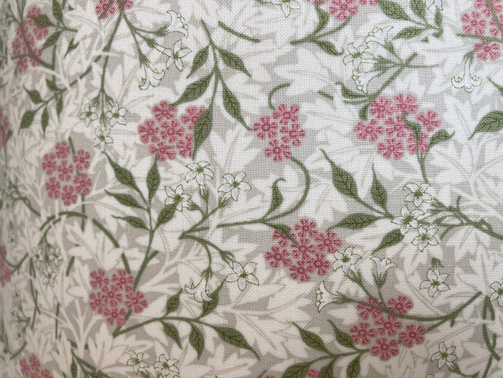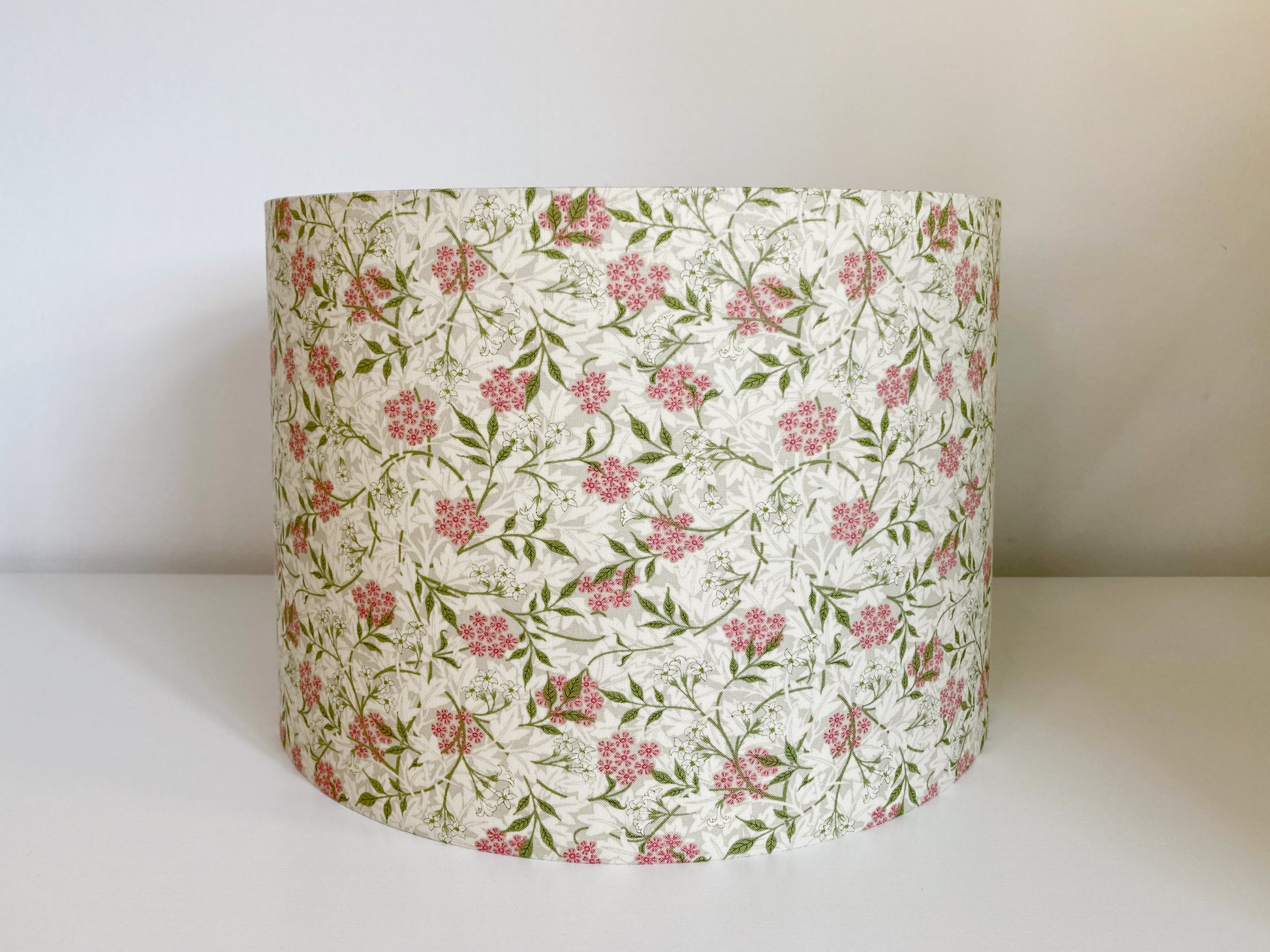 Handmade William Morris Jasmine in Blush - Pink and Green Colour Fabric Lampshade for Table Lamps or Ceiling Pendants with White Inner Lining