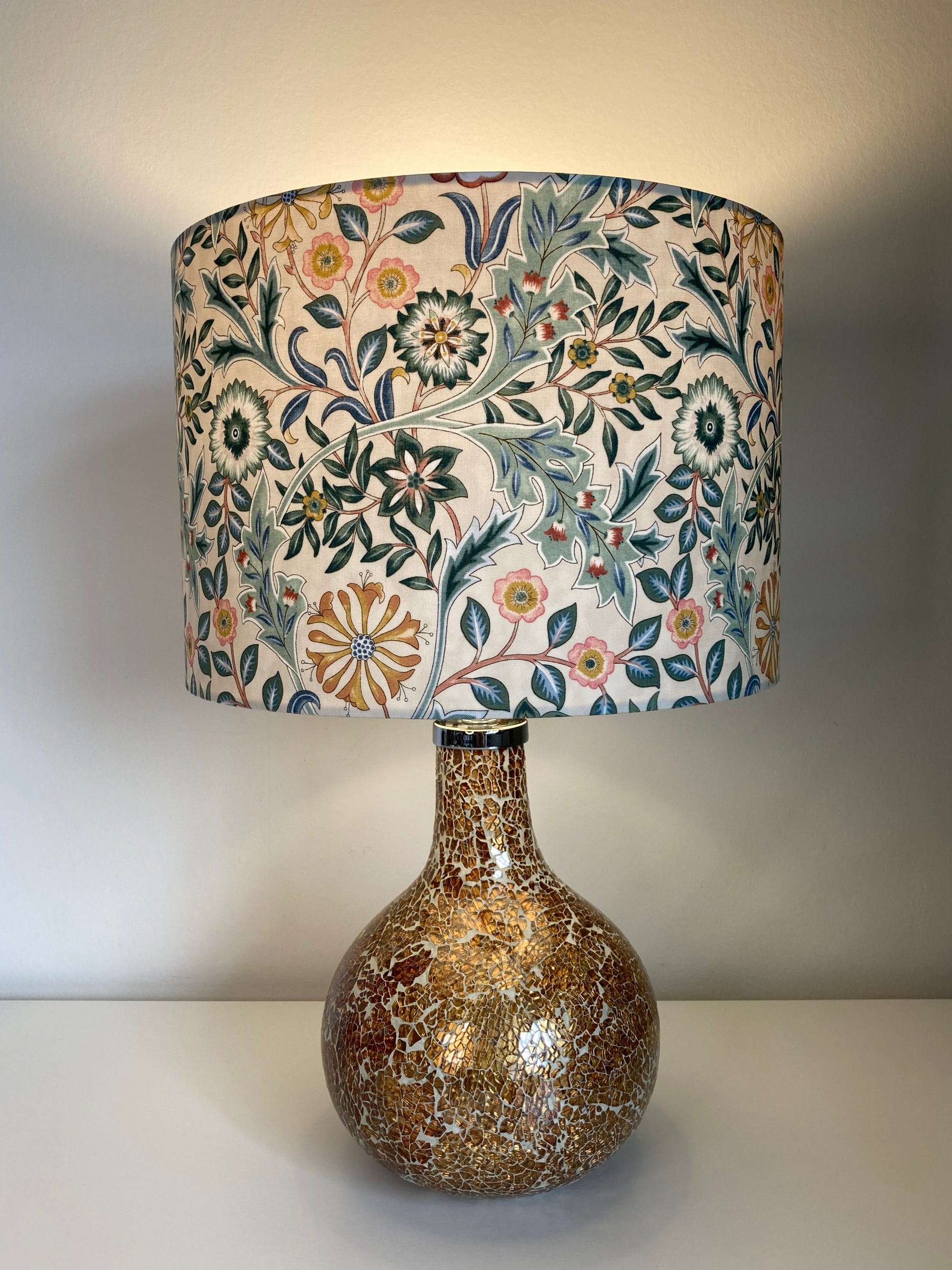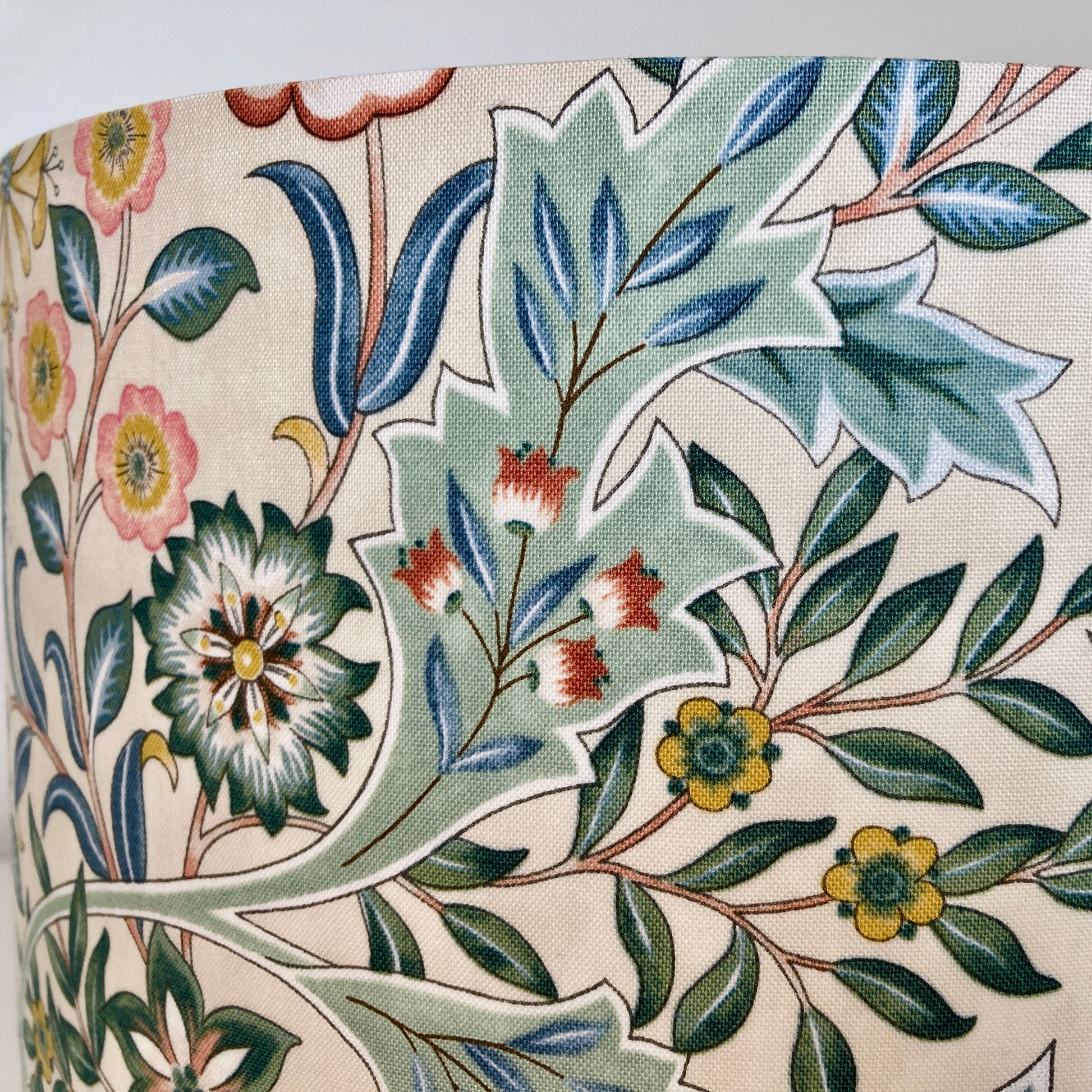Handmade William Morris Wilhelmina in Linen Colour Fabric Lampshade for Table Lamps or Ceiling Pendants with White Inner Lining